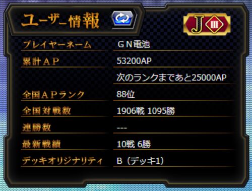 ©SEGA J3昇格ですよ。 割と多忙だし、最寄りのゲーセンまで自転車で30分かかるし、1日1000ぐらいしか盛ってないしでそりゃ時間かかるわなって話ですよ。 昇格に直接繋がったデッキがこちら。 ©SEGA 協力:COJ高等技術研究所 「毘沙門!!」って感じですね(…
